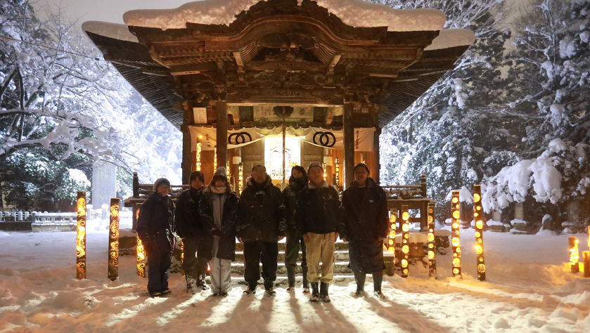 2017年 福島市制110周年記念イベント「義経サミット」開催時、福島市飯坂町にある、義経が立ち寄った、佐藤一族の菩提寺、医王寺を竹灯籠で灯し、全国からのお客様をお出迎えする事を計画。立ち寄った観光客をお出迎えしました。
